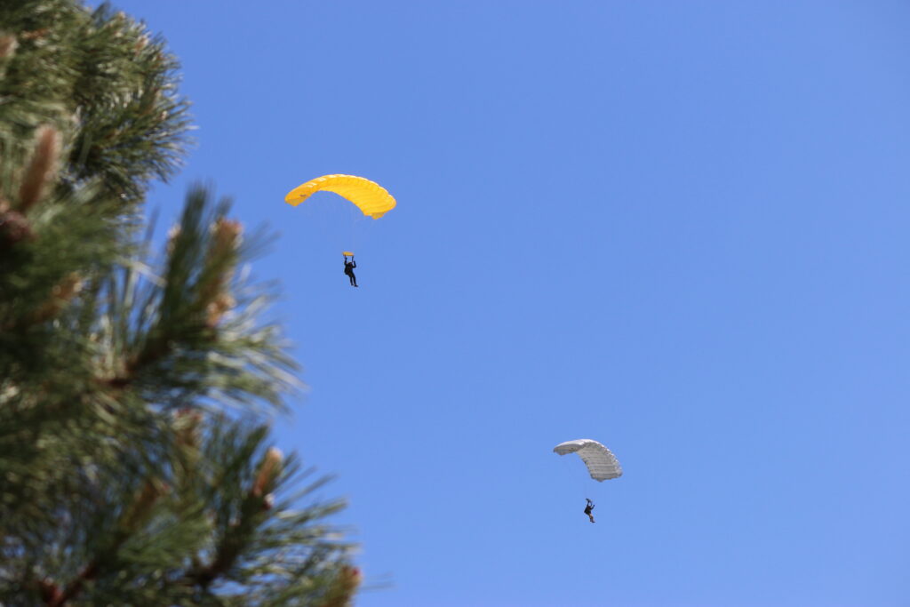 As soon as my name was called for my first jump, reality hit, this wasn’t just playing pretend anymore. I followed my group of other anxious Cadets to the gear-up room where we put on our harnesses with our parachutes, just as we were trained to do. The instructors ran some final checks, then loaded us onto the Twin Otter to climb to 5000 feet above the Air Force Academy. I am still not sure if that climb takes five minutes or 1 hour, but it felt like an eternity. Lucky for me, I was usually the first person out of the airplane. Finally once the aircraft climbs to its altitude, the door opens, and the Jump Master gives the command “STAND IN THE DOOR”, a phrase seen everywhere within the Ground Training Facility, and a moment we practiced hundreds of times, yet somehow once the wind hit my body, it felt like moving a mountain just to get outside of the door. The Jump Master ran my final check, and gave the “GREEN LIGHT, GO” in which I simply stepped outside of the aircraft and let go of the side, just like I was trained to do. Feeling the surge of wind all over my body was a friendly reminder that I was currently falling out of the sky, with no help except for the parachute on my back. I ran through my ten-second sequence, and it was finally time to pull. Thankfully I never ran into any issues, but once I ran my safety checks and realized I was okay, I was gifted with the clearest view of the Rocky Mountains, Pike’s Peak, and the Garden of the Gods that only a few thousand people ever get to see in their lifetime.